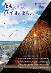 「花火のまち、バイオのまちへ」と題し、長岡版産業エコシステム、長岡バイオエコノミーコンソーシアムと長岡市の事業、NAGAOKA・AIST-BILの設置、長岡技術科学大学COI-NEXT、バイオ都市・長岡の紹介、を掲載しています。
